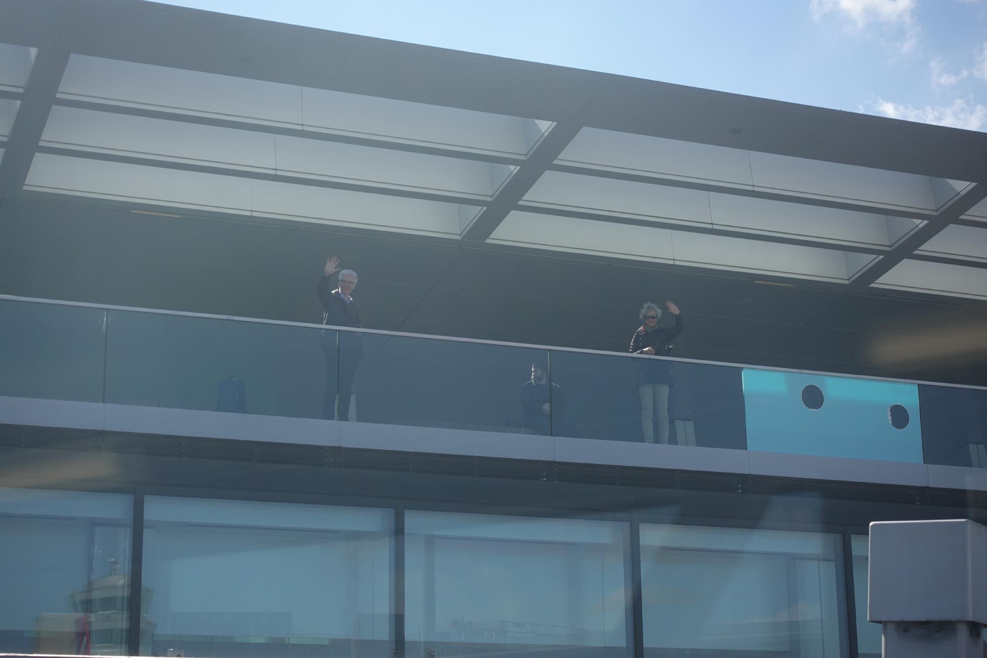 Dann gehts endlich los. Vorbei an bekannten Gesichtern auf der Flughafenterrasse steigen wir hoch …