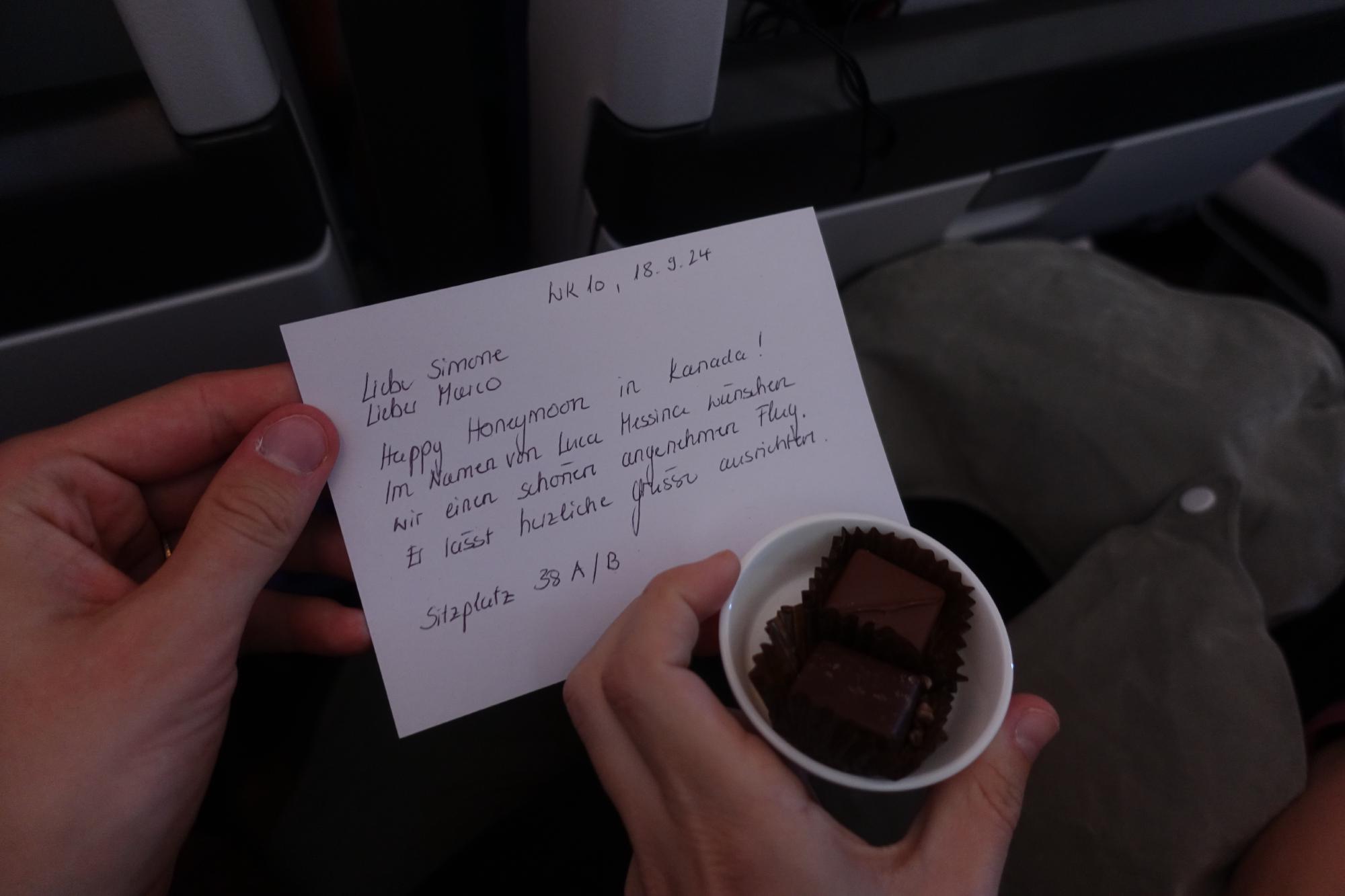 Nachdem wir uns von allen Gästen verabschiedet haben, die heute extra für uns an den Flughafen gekommen sind (Danke, es hat uns mega gefreut!), boarden wir gewohnheitsmässig als fast letzte und beziehen unsere Plätze für die nächsten 11 Stunden in der Reihe 38. So steht unser Flieger dann noch rund 1h15 am Gate, da wir scheinbar auf die letzten Gäste und die Biese (?) warten müssen.