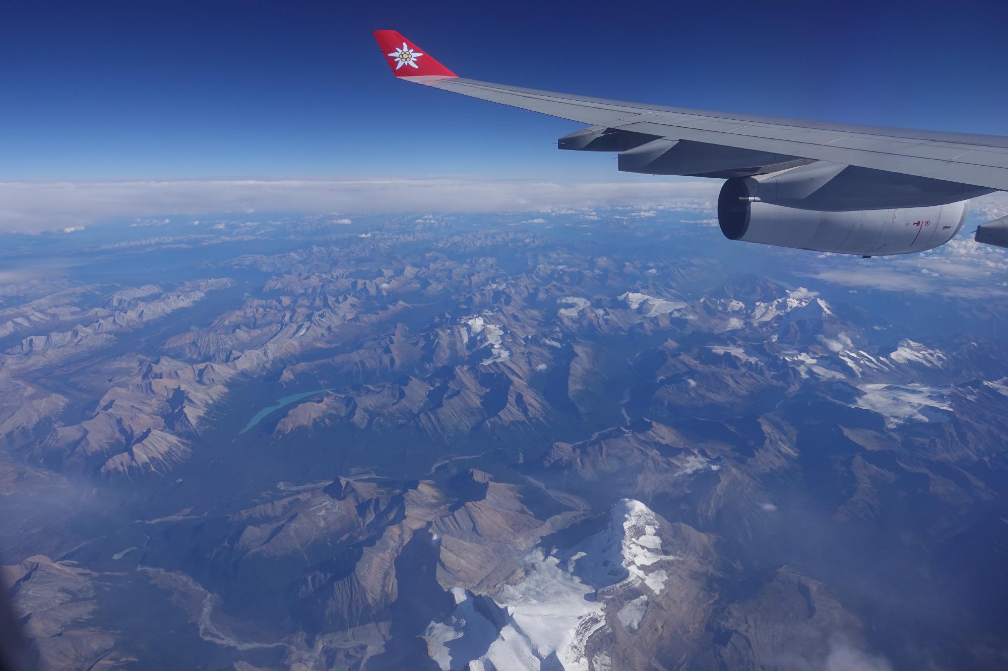 Die Zeit vertreiben wir uns mit Älplermagronen, Bratwurst mit Rösti, Kung Fu Panda 4, Bonjour Ticino, The Boys in the Boat und One Life, während wir über Amsterdam aufs offene Meer und ein paar Stunden später die Eiswüste Grönlands schweben. Dann erhalten wir auf 10'000m noch einen kleinen Gruss aus der Schweiz.