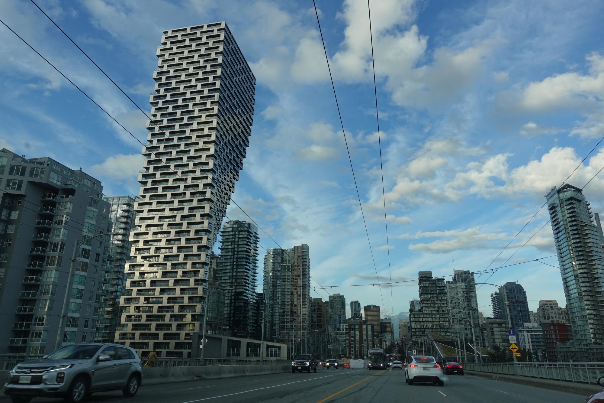 Auf dem Rückweg aus den Stanley Park lädt uns Bert an einer Kreuzung ab und wir erkunden Vancouver Downtown zu Fuss weiter. Mittlerweile hat sich der Nebel verzogen und es scheint die Sonne. Es ist aber immer noch sehr kühl und wir fühlen uns wie echte Touristen mit unseren dicken Winterjacken, in denen wir sogar leicht frösteln. Die Einheimischen sind alle in kurzen Hosen und T-Shirts unterwegs bei 10 °C!