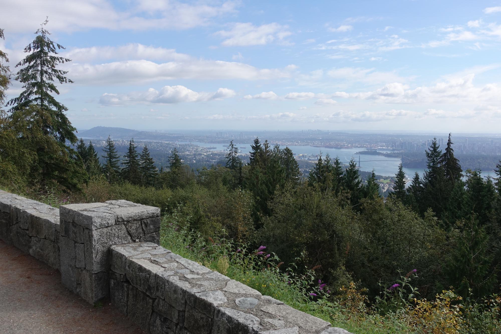 Wir fahren weiter, Google Maps fürt uns schnurstracks nach Cypress Mountain, im Winter ein Skigebiet. Was auf der Karte aussah wie ein schmales Passsträsschen mit Haarnadelkurven ist in Wahrheit eine zweispurige Autobahn (aber mit Geschwindigkeitslimite 60 km/h). Unterwegs gibt es einen schönen Aussichtspunkt über die Stadt.