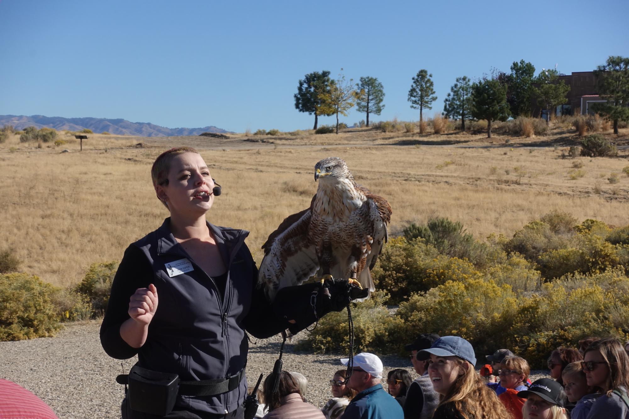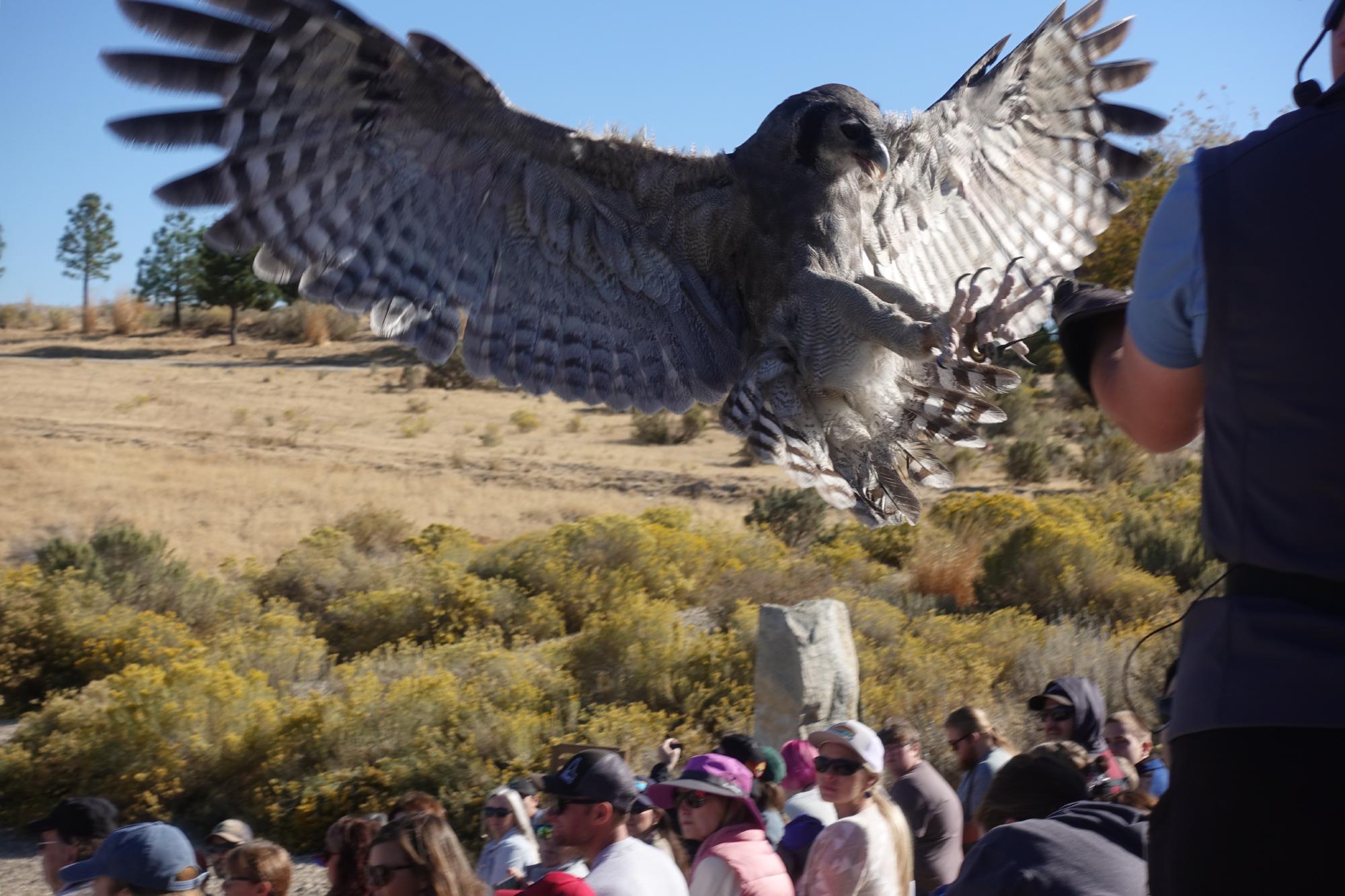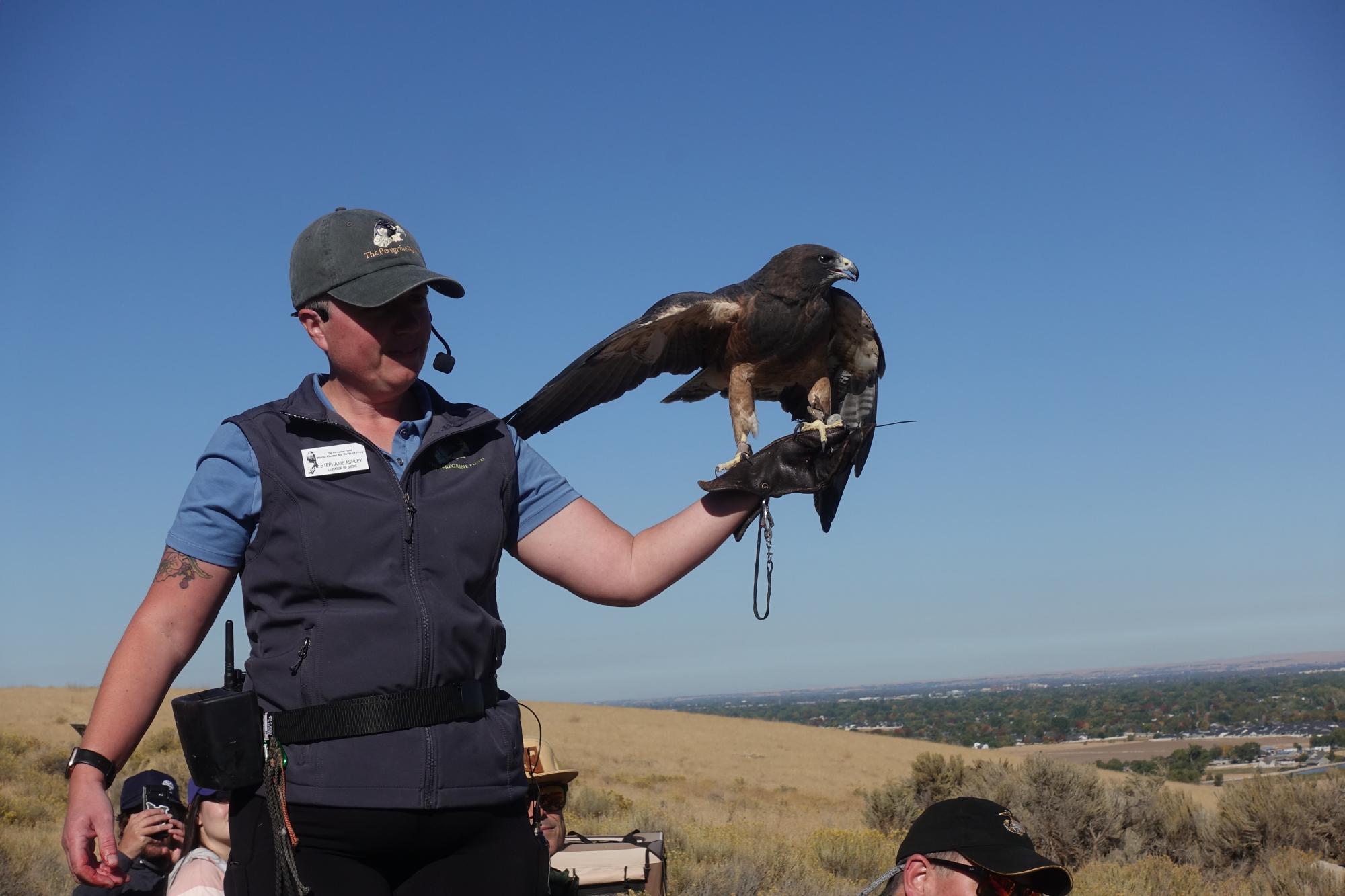 Lustigerweise schläft Marco wie ein Baby diese Nacht, während Simone regelmässig aufschreckt, wenn wieder ein Lastwagen um unseren Camper herum losbraust oder schnittig heranfährt um zu parkieren. Aber es schickt uns niemand weg oder klopft mitten in der Nacht an die Tür, das Boondocken hat wieder wunderbar geklappt. Am Morgen danach scheint die Sonne und vor Tatendrang hält es Simone nicht mehr im Bett. Heute steht ein Besuch in der Wanderfalken-Stiftung an; es ist ein grosses Zentrum für Raubvögel, das sich der Zucht und Auswilderung von Wanderfalken und Kondoren verpflichtet hat und eine hübsche Einrichtung mit ein paar eingesperrten Raubvögeln betreibt. Nur die Zuchtstation kann man leider nicht besichtigen. Gestern Abend haben wir noch das allerletzte Ticket für die um elf Uhr startende und ausverkaufte Fall-Flights Show im Internet ergattert. Zuerst war Simone mega enttäuscht, ein Ticket reicht ja nicht für beide… Aber sie hat einen Bittibätti-Kommentar von wegen Honeymoon und letzter Tag in Boise mitgeschickt und darum probieren wir unser Glück.
