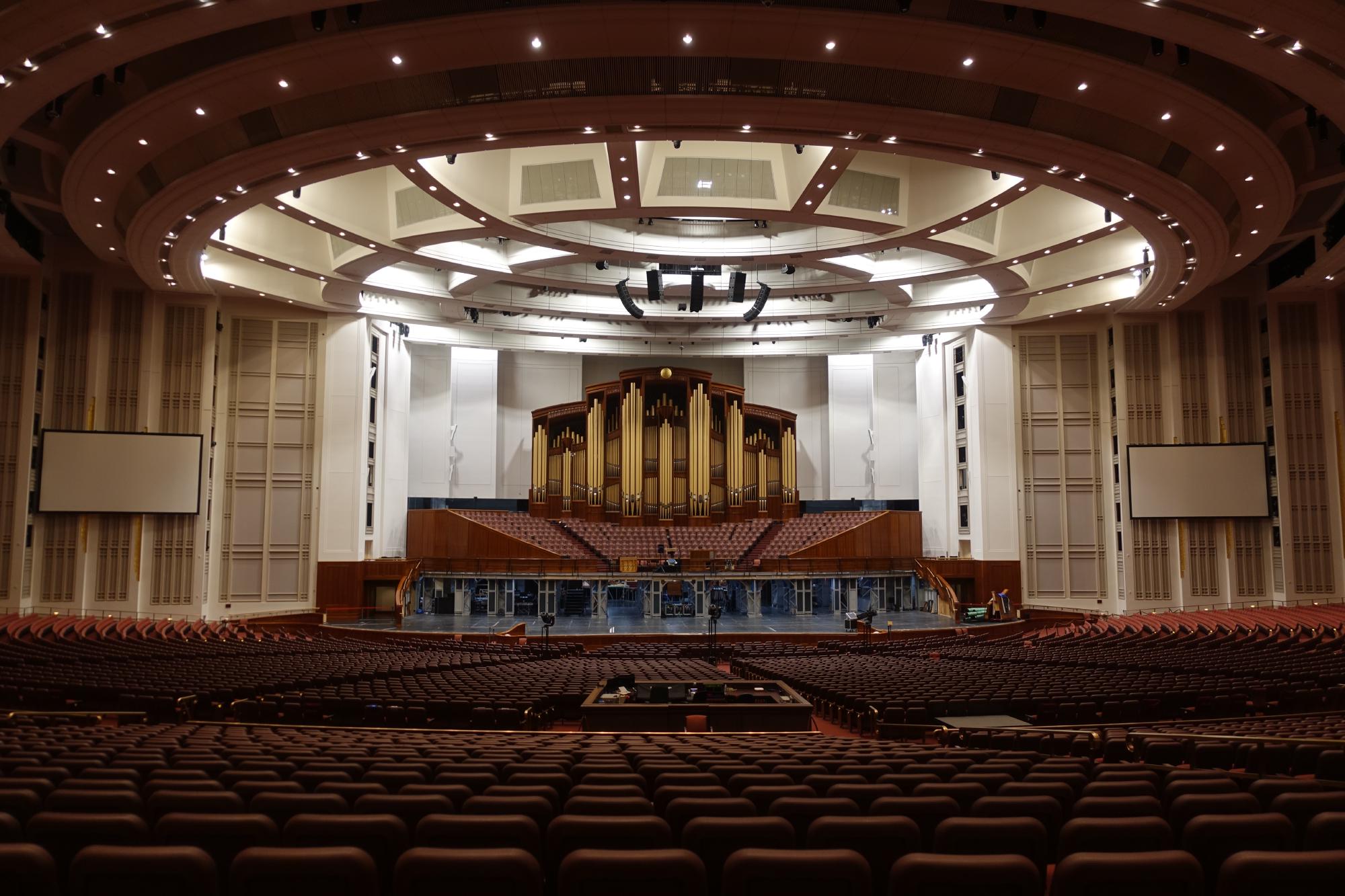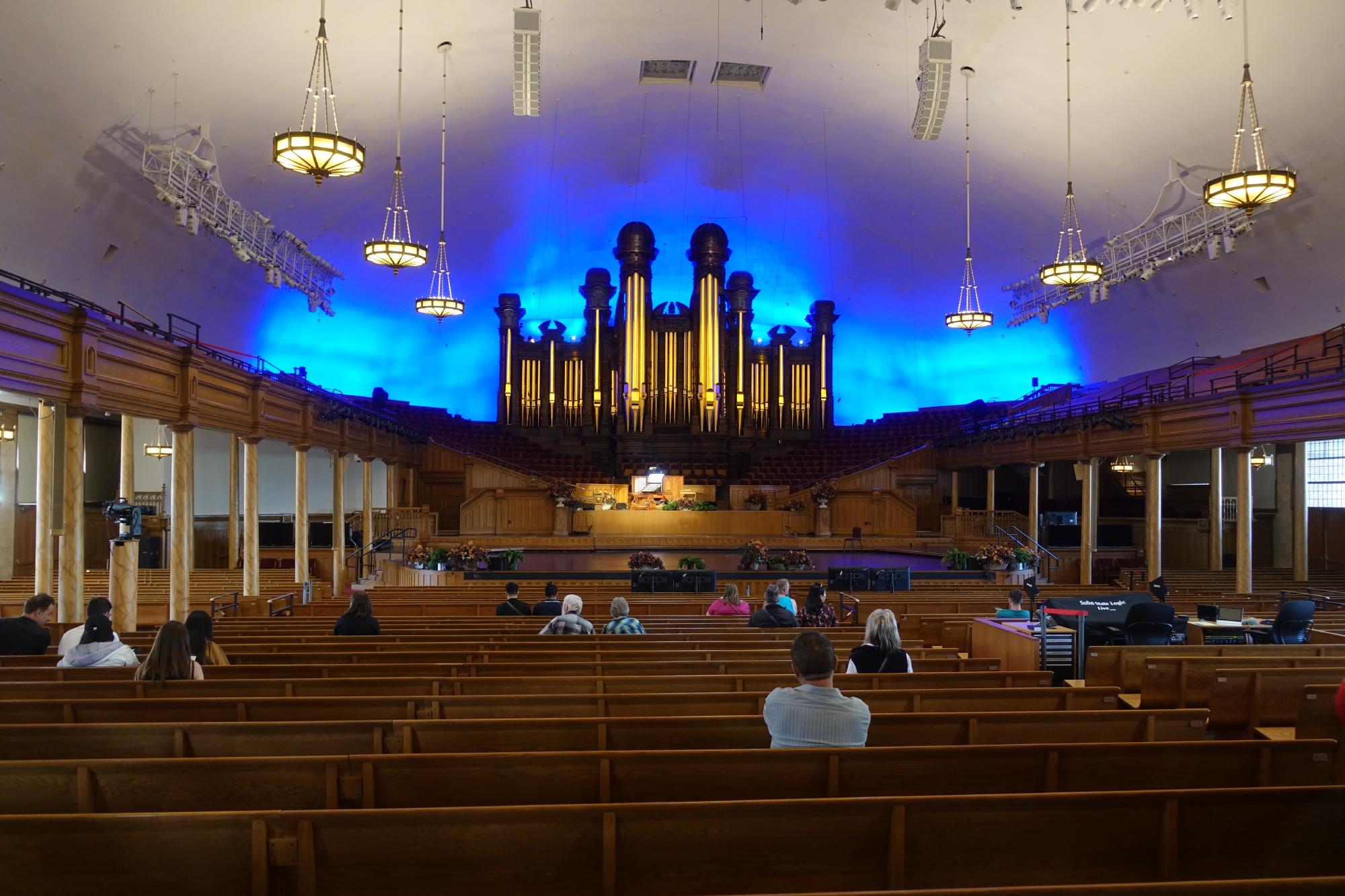 Wir verabschieden uns herzlich und stolpern ein Haus weiter in den Tabernakel. Von aussen eher unscheinbar, ist es von innen eine Konzerthalle mit exzellenter Akkustik. Jeden Mittag um 12 Uhr findet hier ein Orgelkonzert statt, und auf dieses zielen wir heute ab. Die Organistin kündigt sich gleich selber an und lässt zuerst auf dem Rednerpult eine Stecknadel und einen Nagel fallen, um zu demonstrieren, dass man beides bis nach hinten hört. Dann beginnt sie auf der Orgel mit ihren über 11'000 Pfeifen (!) zu spielen und es ist wirklich sehr eindrücklich. Natürlich Geschmackssache, Simone gefallen Orgelkonzerte eigentlich nicht so gut, immer alles so trist, melancholisch, laut und nicht so präzise, es ist eher ein Geräuschteppich. Aber die Orgel ist wegen ihrer Grösse beeindruckend und die Organisitin wegen ihrem Können. Nur das Beleuchtungskonzept der Orgel könnte man bei Gelegenheit einmal neu überdenken, das finden wir ganz schrecklich.