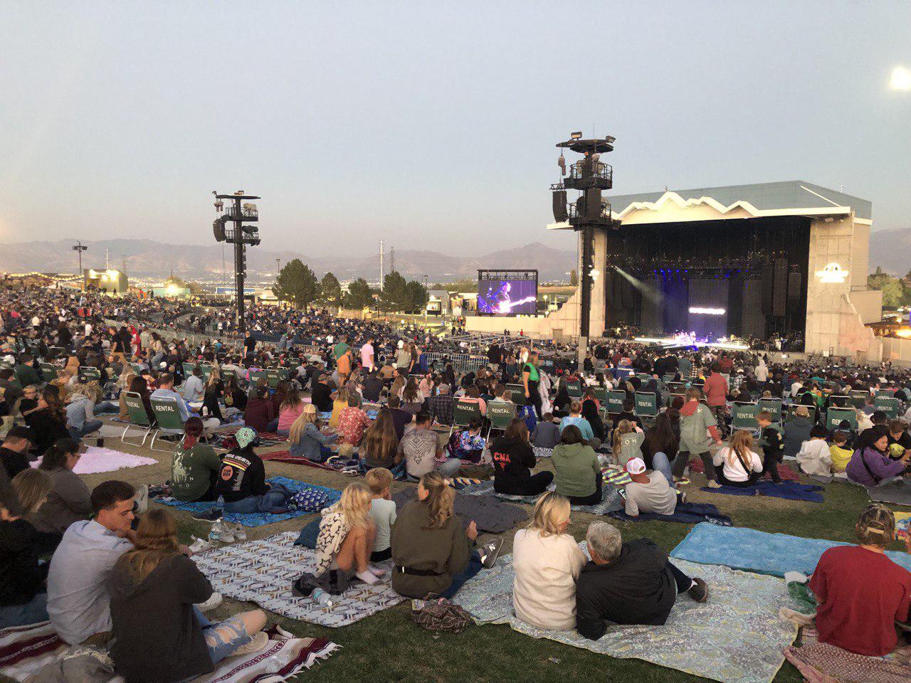 Heute Abend haben wir noch etwas Spezielles vor: wir gehen an ein Imagine Dragons Konzert. Vor zwei Tagen haben wir irgendwie per Zufall rausgefunden, dass sie heute hier in Salt Lake City auftreten und noch Tickets zu haben sind. Also haben wir kurzerhand welche gekauft. Das Konzert startet um 19h und wir haben lange recherchiert, wie wir zur Venue kommen… Aber mit dem ÖV ist es unmöglich und wir dachten, dass ein Taxi zu bestellen bei so vielen Menschen auch nicht gerade einfach ist. Also haben wir uns für die letzte Option entschieden: wir fahren mit dem Camper ans Konzert! Im Internet steht nichts davon, dass solche Vehikel auf dem Parkplatz nicht willkommen sind, also gehen wir einfach genug früh und schauen uns vor Ort die Parkplatzsituation an. Das Ganze läuft wie am Schnürchen und auf dem Festivalparkplatz weisen sie uns kommentarlos ein. Ganz erstaunt sind wir nun viel zu früh hier, also machen wir es uns noch etwas im Camper gemütlich, packen dann in aller Ruhe unsere Sachen und als die Tore öffnen, sehen wir uns den Ort einmal von nahe an.