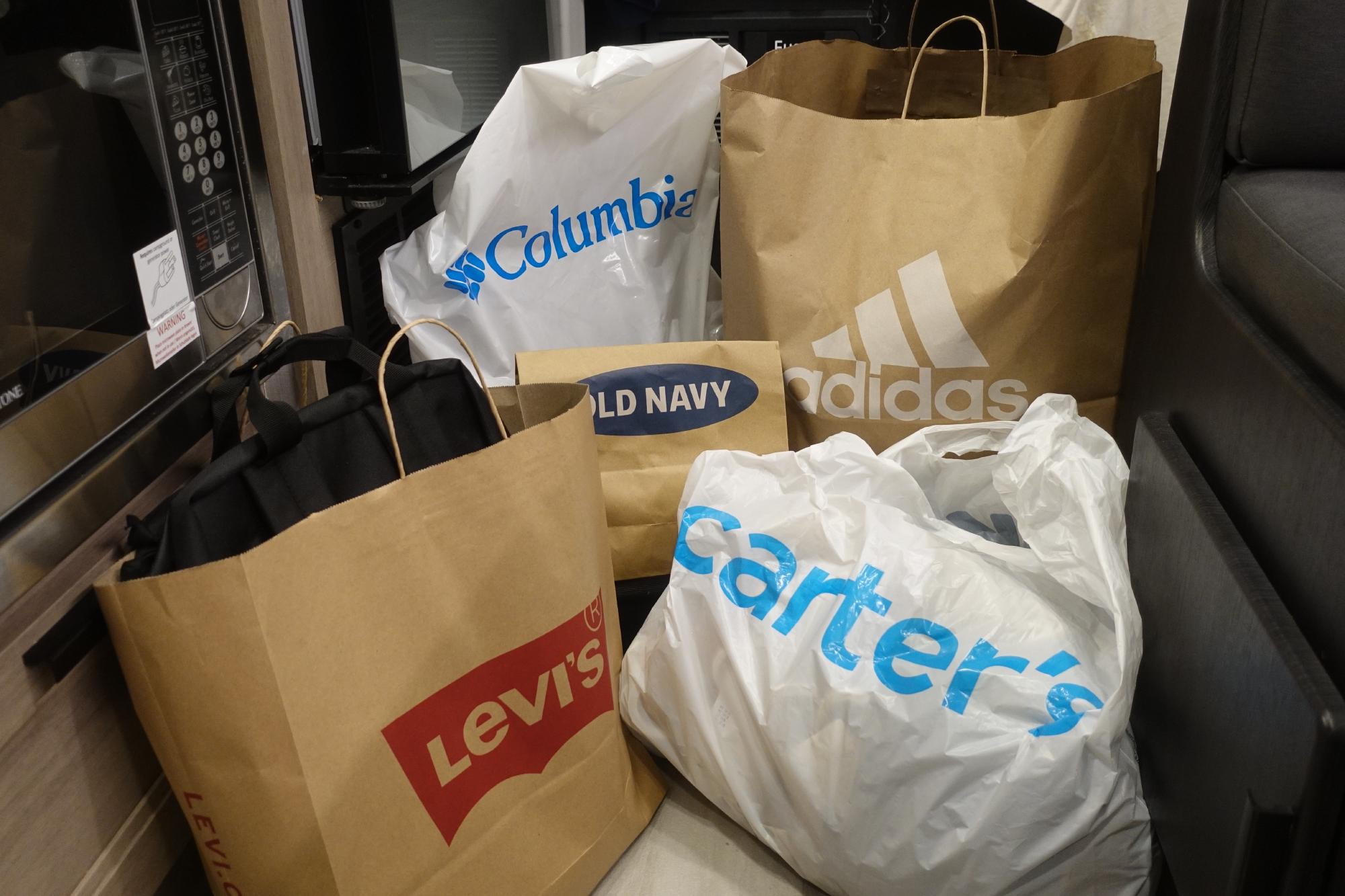 Nach dem Frühstück fahren wir als erstes zu einer Tankstelle, unser Benzin ist wieder einmal fast ausgegangen. Dann fahren wir ca. 20 Minuten bis nach Park City. Hier gibt es ein grosses Outlet-Gelände, denn wir haben uns für heute Shopping vorgenommen! Und wenn man dabei viel Geld spart, macht es doppelt so viel Spass. An dieser Stelle sei noch erwähnt, dass so ein Shopping-Entscheid in unserem Haushalt nicht leicht gefällt wird; Marco hat normalerweise immer tausend gute Gründe, wieso der Zeitpunkt nicht praktisch ist oder schlägt alternative Programmpunkte vor, die spannender sind. Aber für heute haben wir uns tatsächlich geeinigt. Also, natürlich immer mit der Option, sich auf dem Parkplatz im Camper zurückzuziehen und eine Pause zu machen oder einen Regenspaziergang zu unternehmen um etwas frische Luft zu schnappen. Mit all diesen Optionen im Hinterkopf kommen wir um fünf nach elf an (die Shops haben ab 11:00 geöffnet) und legen los. Man kann schon fast von einem Shopping-Marathon sprechen, denn wir werden erst abends um halb sieben wieder davonzotteln (die Läden schliessen um 19:00). An dieser Stelle sei gesagt, dass Marco fast noch ein bisschen mehr Ausdauer hat als Simone… also wirklich, eine beachtliche Leistung!