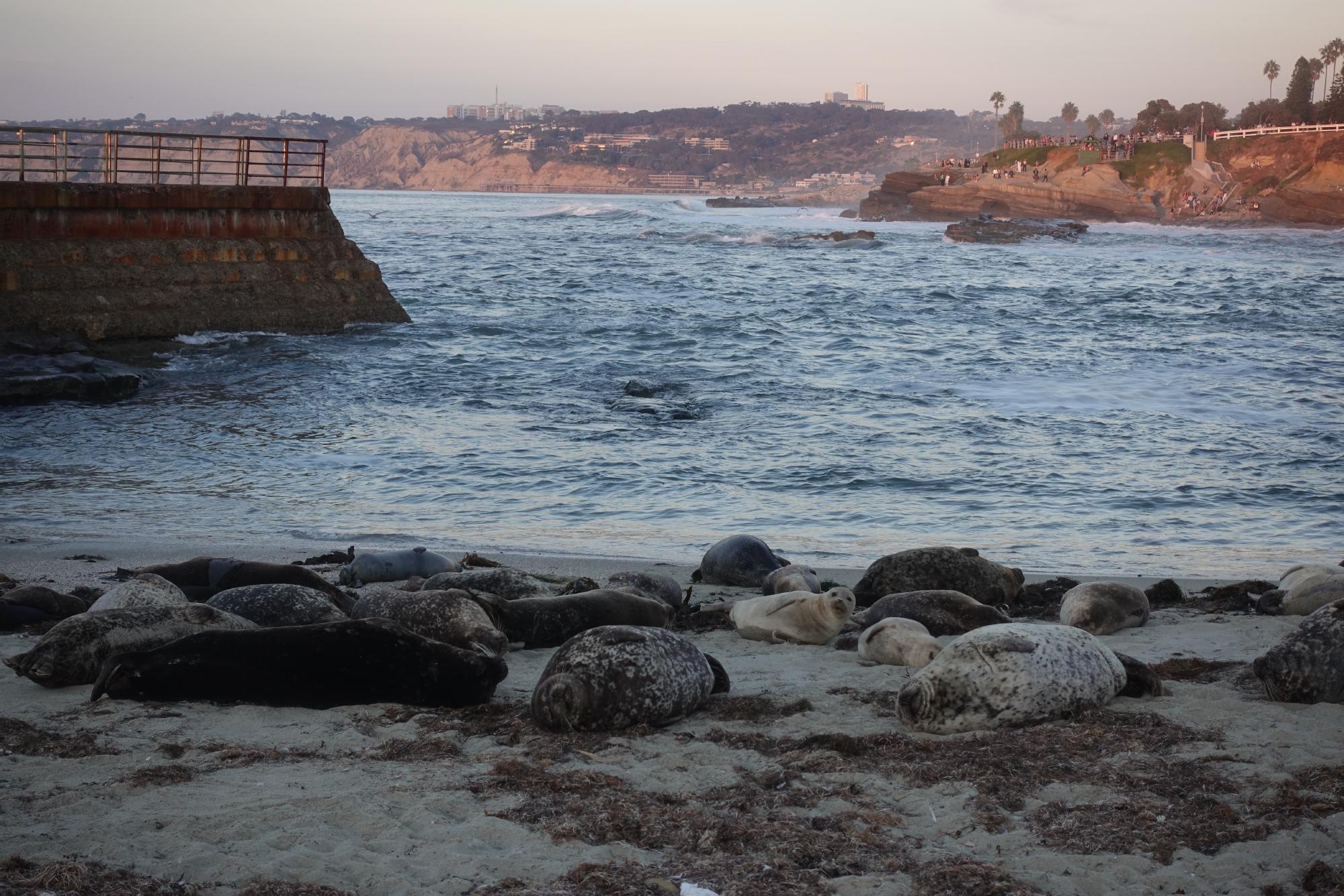 Zurück beim Camper köcheln wir ein Mittagessen, bevor es weitergeht nach La Jolla. Es ist viel los, wir entdecken zwei Hochzeiten direkt vor der Meereskulisse (wieso auch immer diese an einem Sonntagabend stattfinden) und diverse Fotografen blitzen hier ihre Models an.