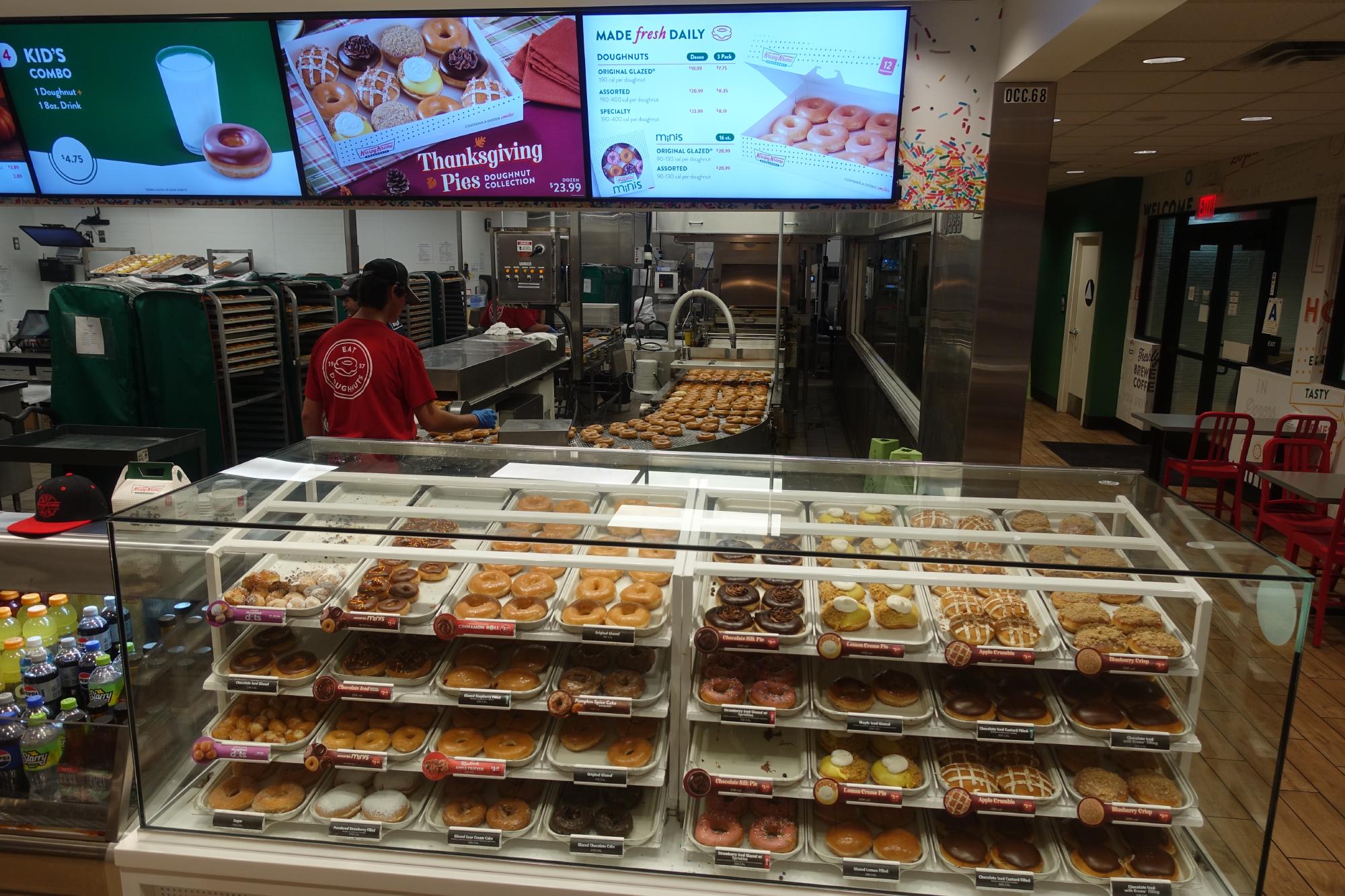Frisch gestärkt fahren wir in der dunklen Nacht (es ist erst halb sechs) weiter nach Norden und lassen San Diego hinter uns. Unser Ziel ist eine Filiale von Krispy Kreme, und nun kommt Marco eeeendlich zu den lang ersehnten Doughnuts. Der Einkauf hier ist ein Erlebnis; im Laden-Hintergrund sieht man gleich in die Backstube und vor dem Auswählen kriegt man einen warmen, frischen Doughnut direkt vom Förderband gratis zum Probieren! Dann lässt man uns Zeit, um die Auslage zu studieren, und wir können ganz in Ruhe aussuchen. Natürlich gönnen wir uns gleich eine 12er-Schachtel, die leeren wir schon in den nächsten paar Tagen (meint Marco). Marco ist der festen Überzeugung, dass dies die wahren, echten und besten Doughnuts sind. Schade, haben wir die erste Filiale erst drei Tage vor Abreise gefunden (oder, vielleicht ist es auch besser so…)